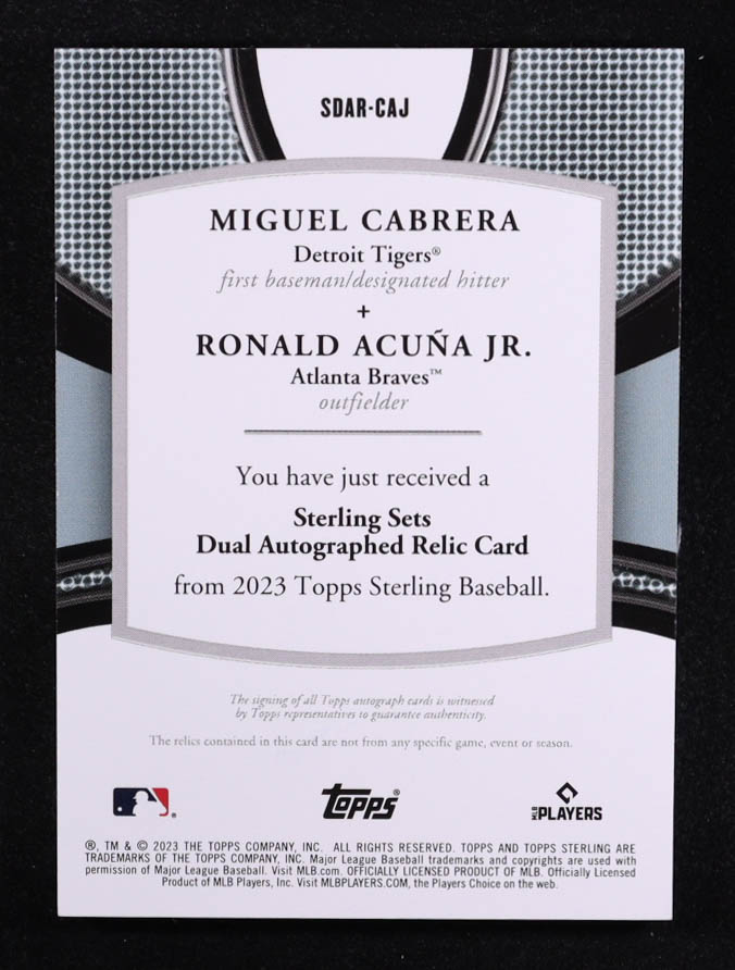 Miguel Cabrera / Ronald Acuna Jr. 2023 Topps Sterling Sterling Sets Dual Autograph Relics Red #SDARCAJ #4/5