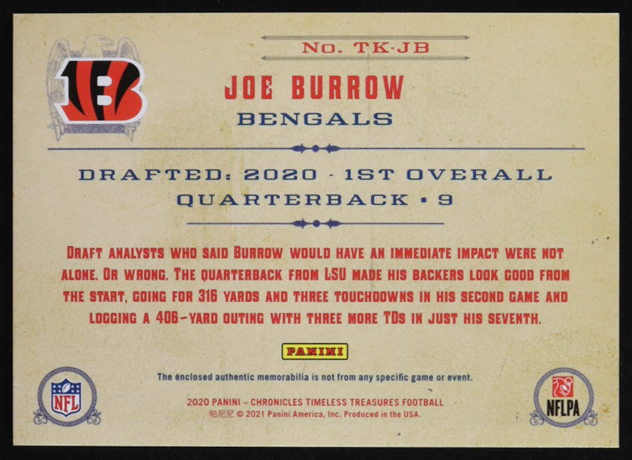 Joe Burrow 2020 Timeless Treasures Jerseys #1 #229/399 RC