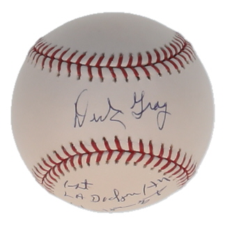 Rawlings Official Major League baseball has been hand-signed and inscribed by Dick Gray (D. 2023, Los Angeles Dodgers).