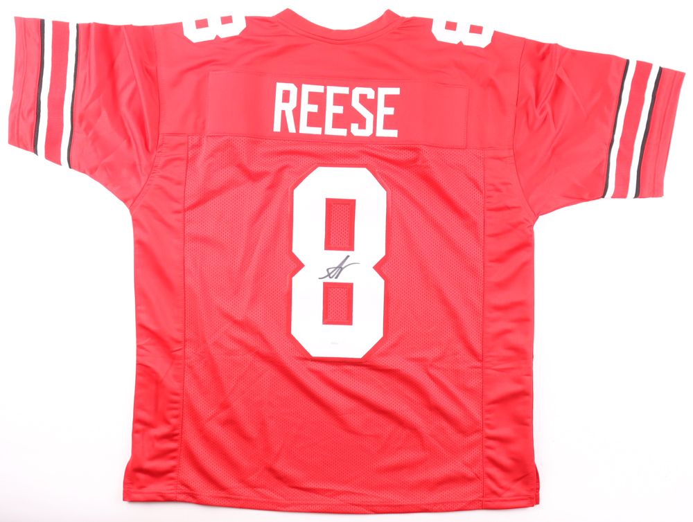 Custom jersey with everything sewn on, size XL. Hand-signed by Arvell Reese.