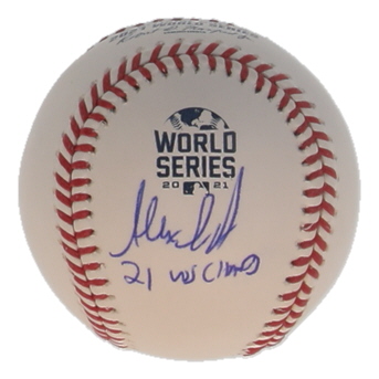 Rawlings Official 2021 World Series Baseball. Hand-signed and inscribed by Alex Anthopoulos.