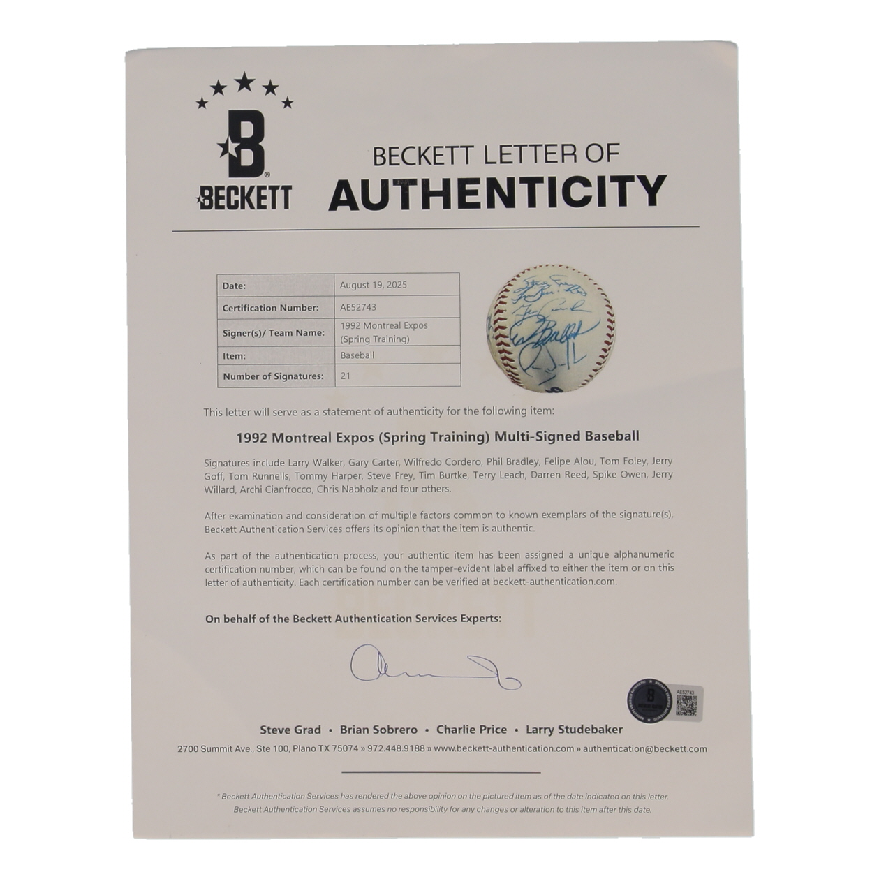 1992 Expos Baseball Team-Signed by (21) with Larry Walker, Gary Carter, Felipe Alou (Beckett)