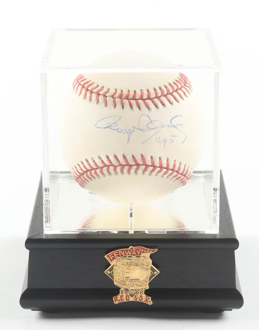 Rawlings Official American League baseball. Hand-signed and inscribed by Roger Clemens (Boston Red Sox, HOF). Note that the display case and Fenway Park pin are included in the listing as shown above. Please see photos for more details regarding the condition of the item.