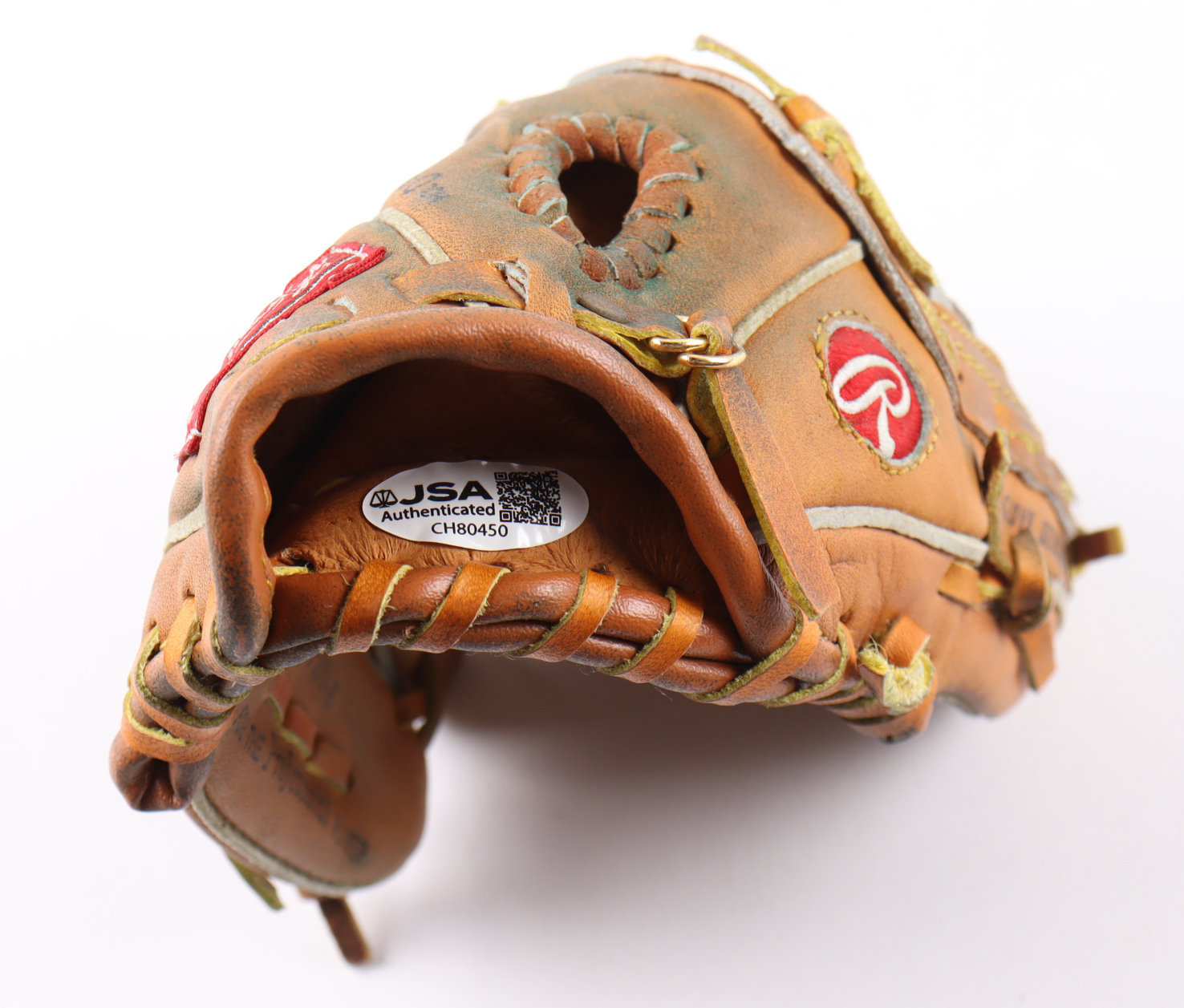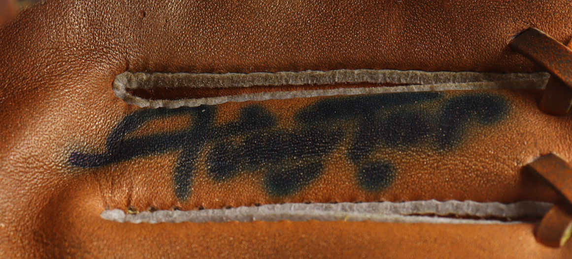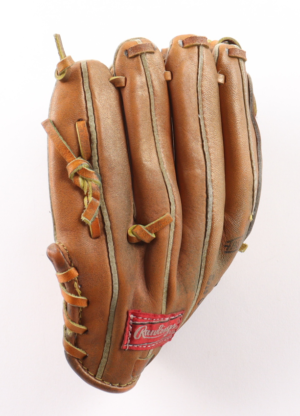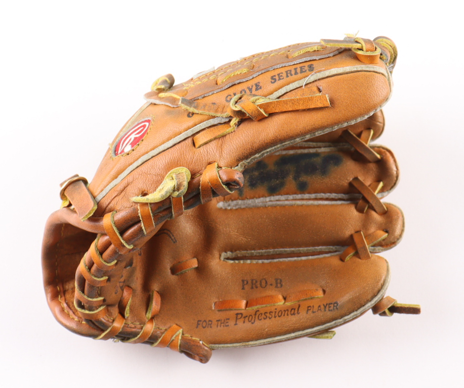 Rawlings Pro-B mini baseball glove has been hand-signed by Willie Mays (D. 2024, San Francisco Giants, HOF). Display case is included as shown. Please note, glove has been naturally toned and stained. Please refer to photos regarding the condition of the item.