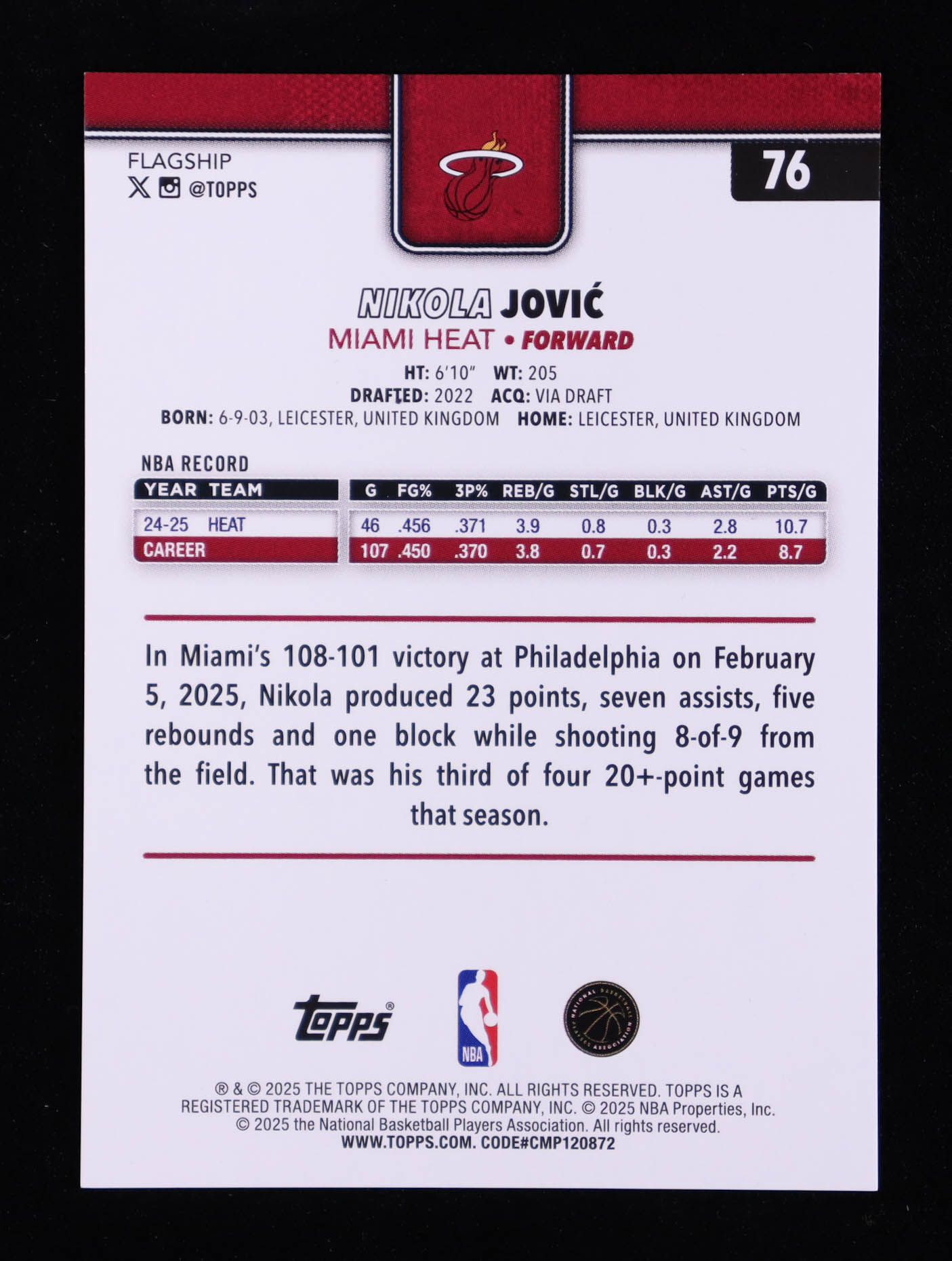 Please see photos for details regarding the condition of the card (Miami Heat).