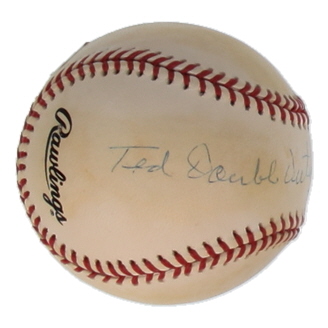 Rawlings Official National League Baseball. Hand-signed by Ted "Double Duty" Radcliffe (D. 2005, New York Black Yankees). Please note, the baseball is naturally toned and stained throughout.
