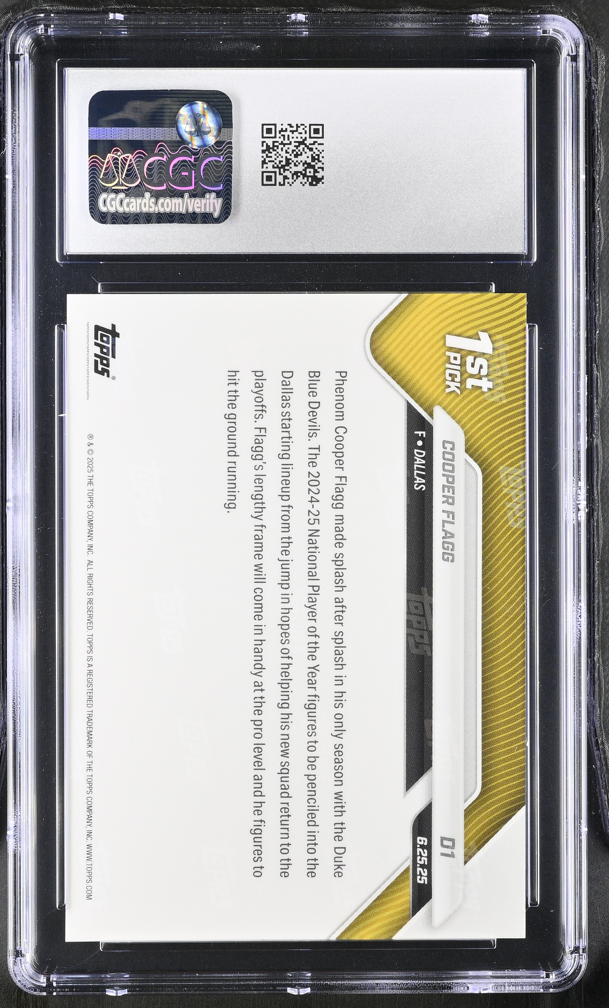 Cooper Flagg 2025 Topps Now Draft #D1 RC (CGC 10)