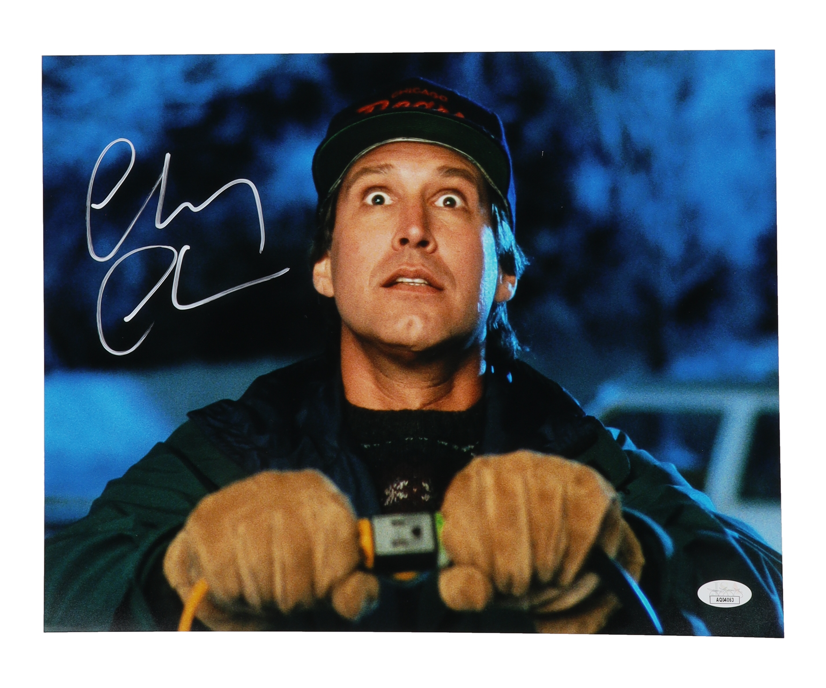 Photo measures 11" x 14" in size and has been hand-signed by Chevy Chase.