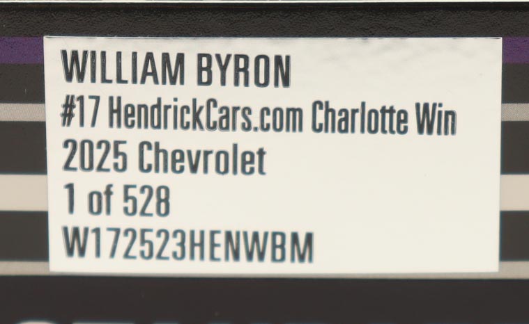 William Byron Signed 2025 #17 Charlotte Win | 1:24 Diecast Car (PA)
