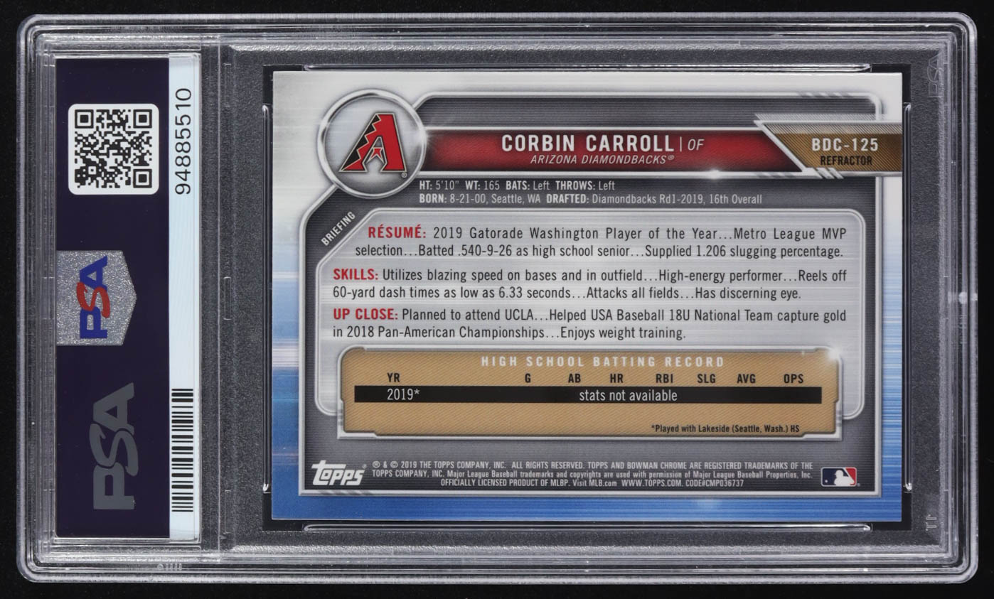 Corbin Carroll 2019 Bowman Chrome Draft Refractors #BDC125 RC (PSA 10)