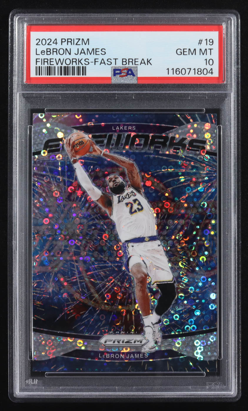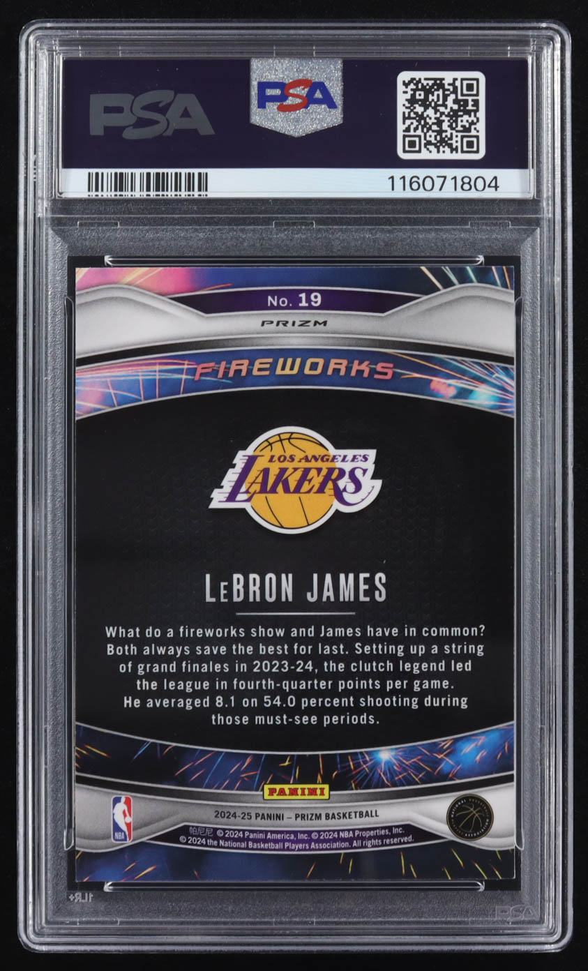 LeBron James 2024-25 Panini Prizm Fireworks Prizms Fast Break #19 (PSA 10)