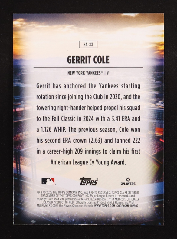 Gerrit Cole 2025 Topps Home Field Advantage #HA33