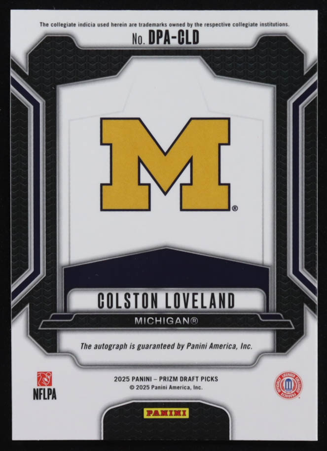 Colston Loveland 2025 Panini Prizm Draft Picks Draft Picks Autographs #90 RC