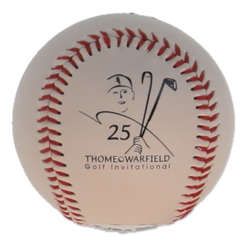 Thome & Warfield Golf Invitational Commemorative Baseball. Hand-signed by Jim Thome (Cleveland Indians, HOF). Please note, the signature is faded and there are stains throughout the baseball.
