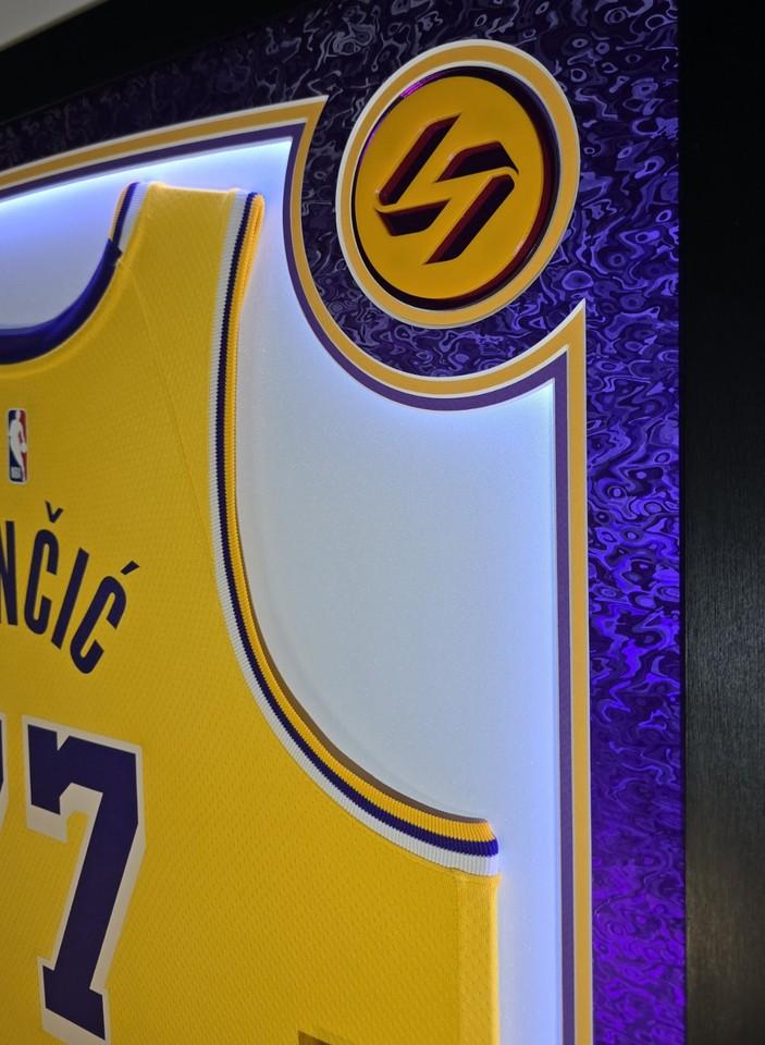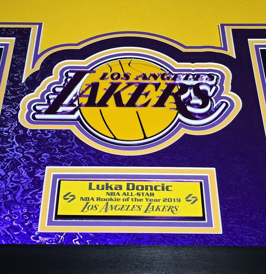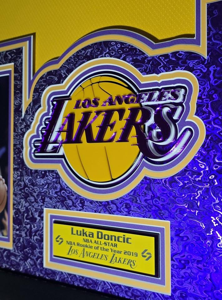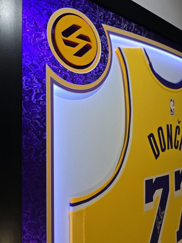 Custom frame measures 42" x 33" in size and features a Nike Swingman jersey that has been hand signed by Luka Doncic (Los Angeles Lakers).