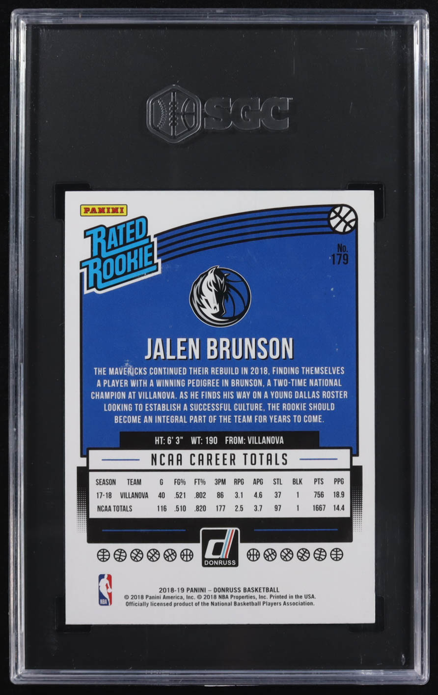 Jalen Brunson 2018-19 Donruss #179 RR RC (SGC 10)
