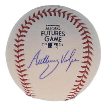 Rawlings Official Major League 2022 All-Star Futures Game logo baseball has been hand-signed by Anthony Volpe (New York Yankees).