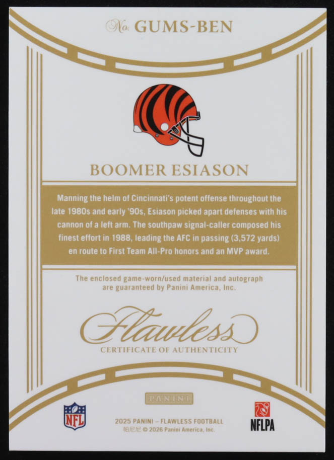 Boomer Esiason 2025 Panini Flawless Game Used Memorabilia Signatures Silver #31 #05/25
