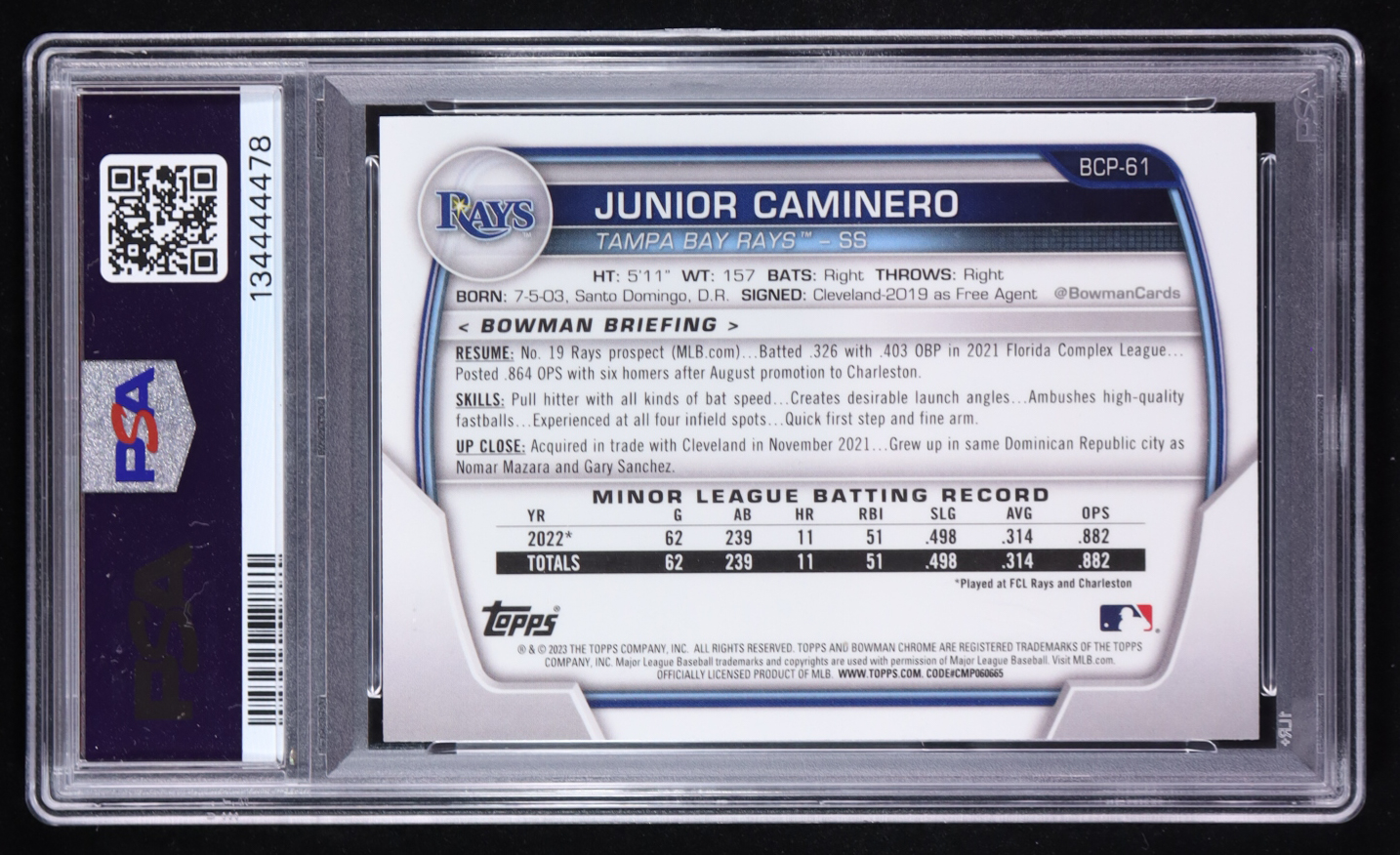 Junior Caminero Signed 2023 Bowman Chrome Prospects #BCP61 (PSA 8 | Autograph Grade 10)