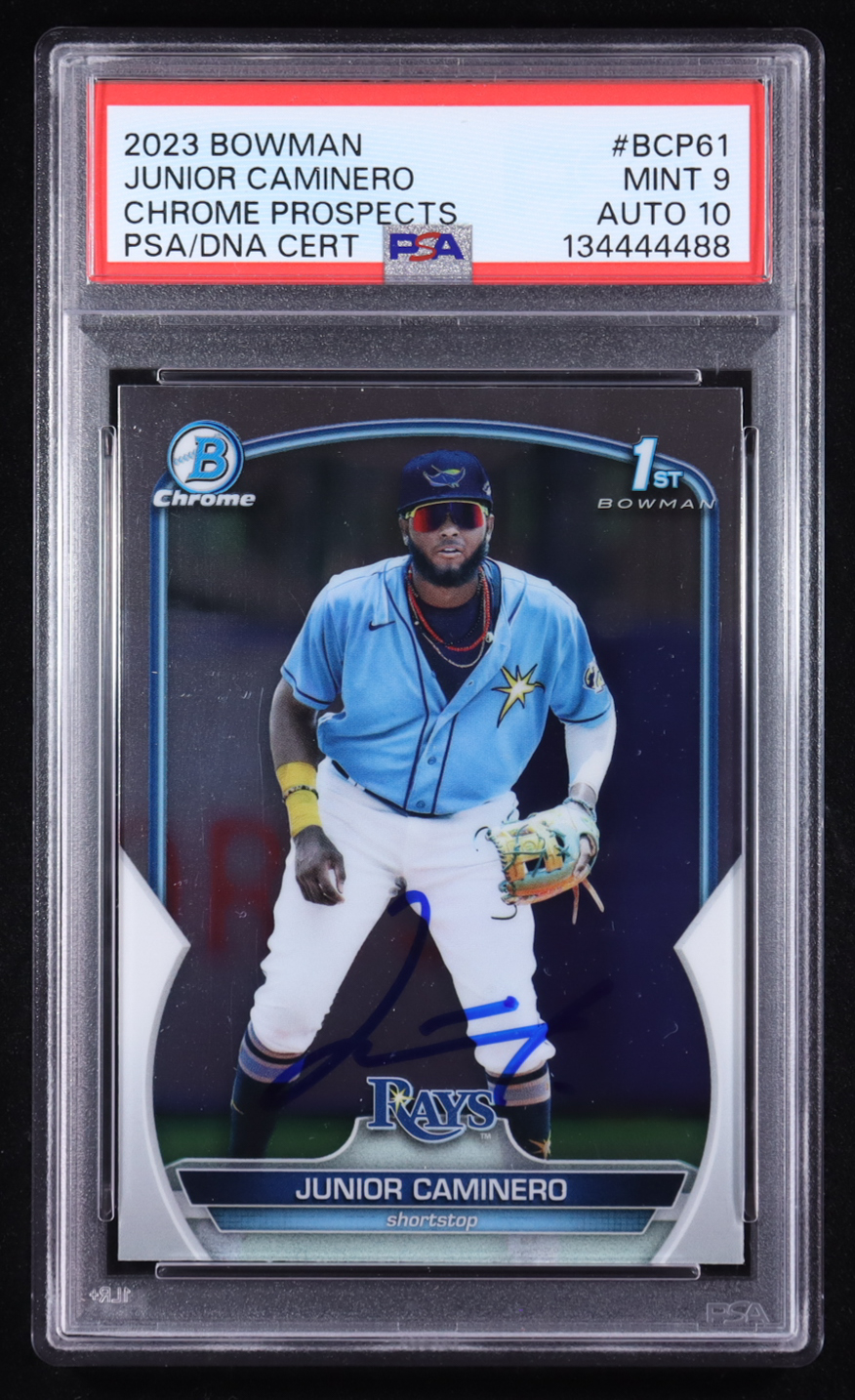 Junior Caminero Signed 2023 Bowman Chrome Prospects #BCP61 (PSA 9 | Autograph Grade 10)