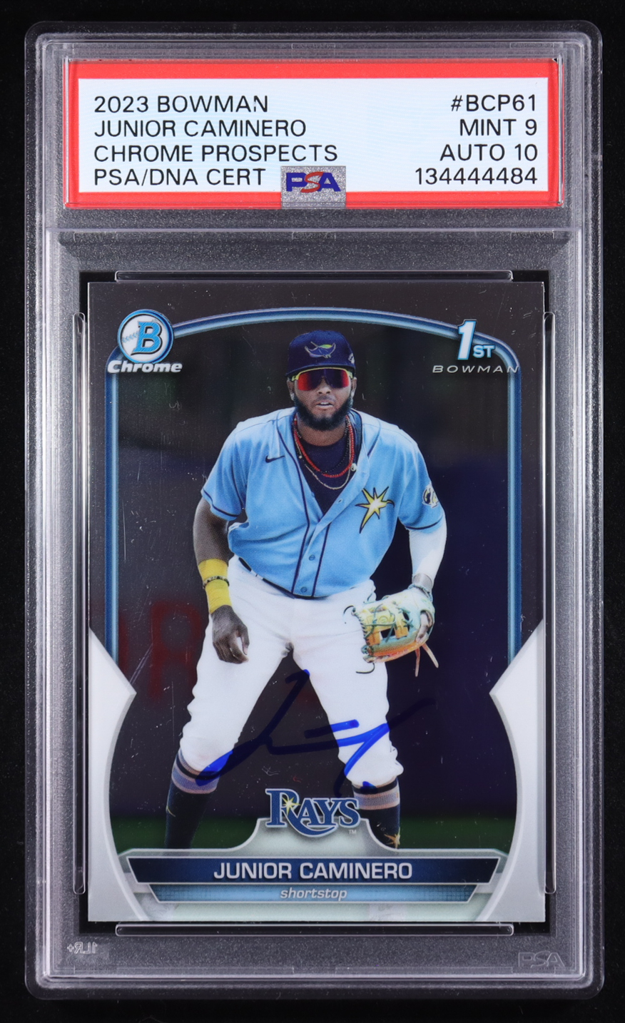 Junior Caminero Signed 2023 Bowman Chrome Prospects #BCP61 (PSA 9 | Autograph Grade 10)