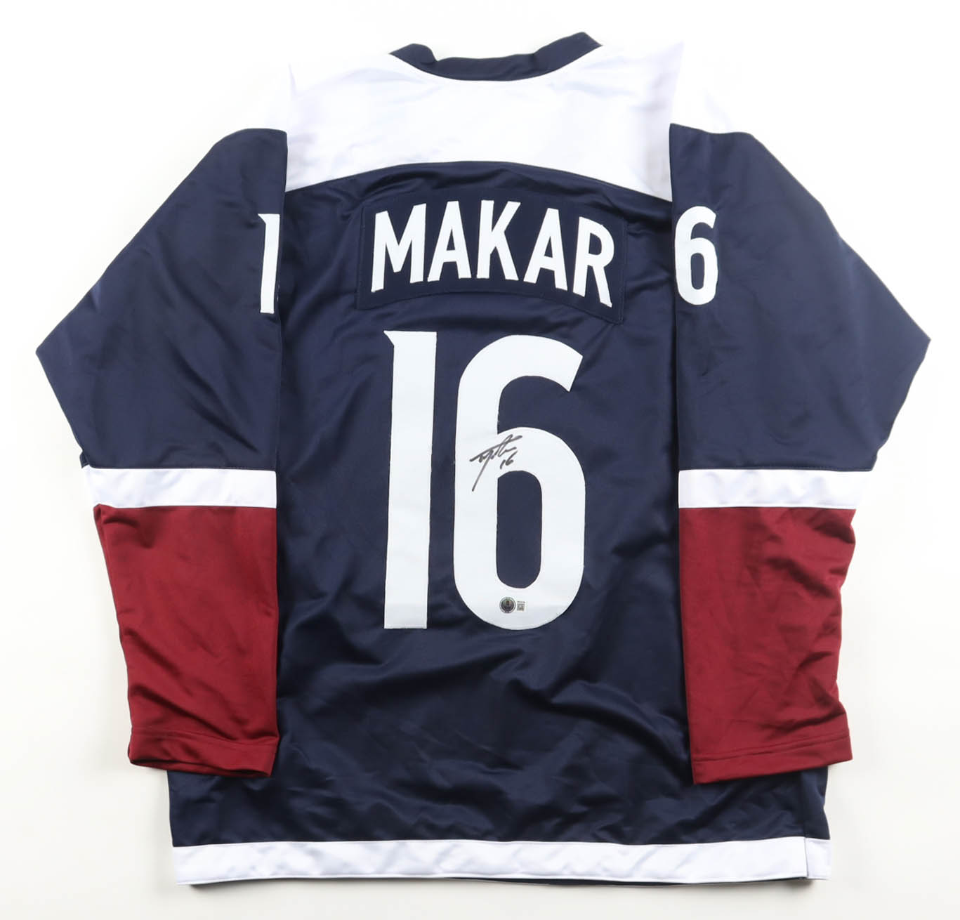 Custom jersey with everything sewn on, size XL. Hand-signed by Taylor Makar.