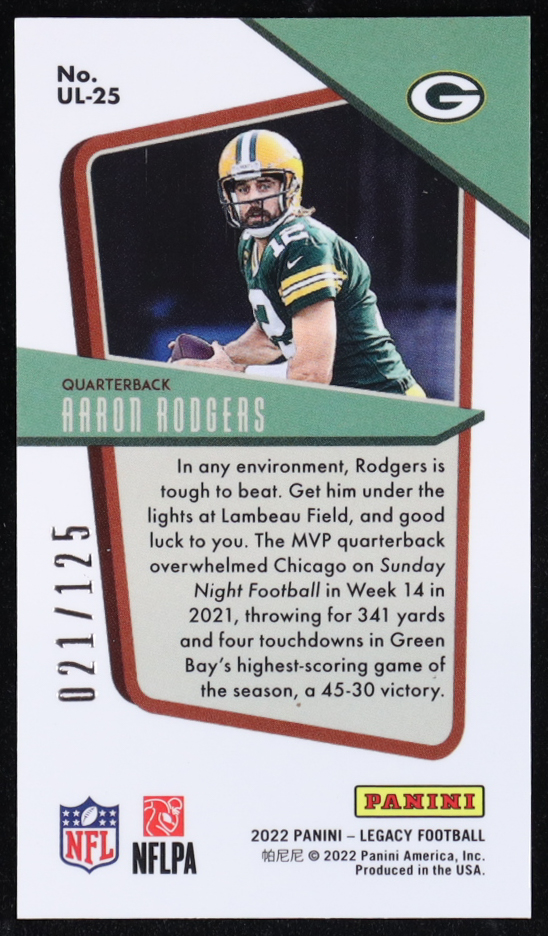 Aaron Rodgers 2022 Panini Legacy Under the Lights Premium Edition Orange Mini #25 #21/125
