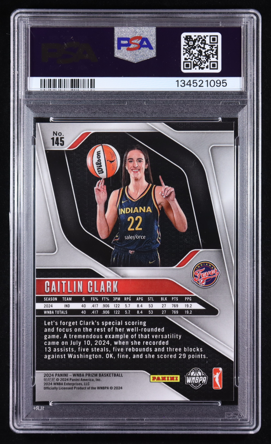 Caitlin Clark Signed 2024 Panini Prizm WNBA #145 RC (PSA)