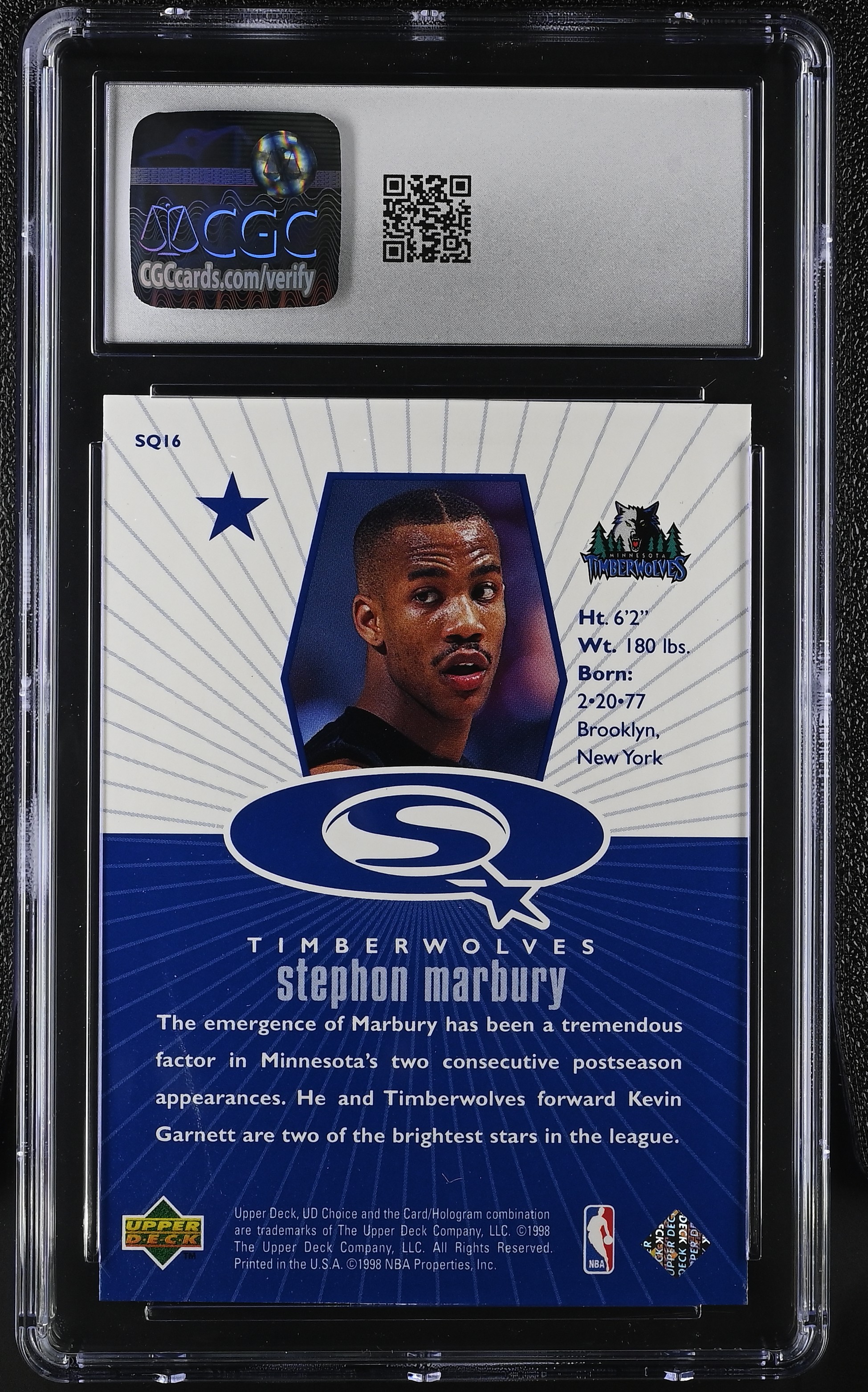 Stephon Marbury 1998-99 UD Choice StarQuest Blue #SQ16 (CGC 9)