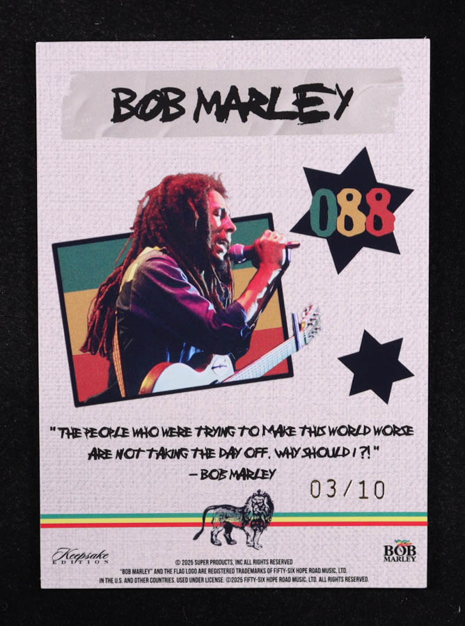 Bob Marley 2025 Keepsake Edition Laser Signagraphs Cracked Ice #088 #03/10
