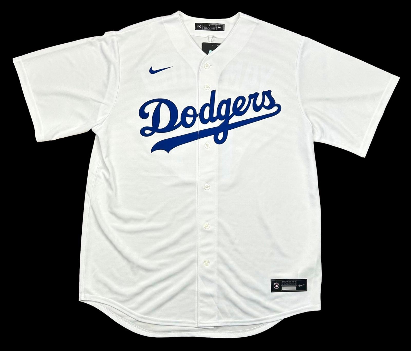 Nike style jersey with everything sewn on, size L. Hand-signed by Yoshinobu Yamamoto (Los Angeles Dodgers).
