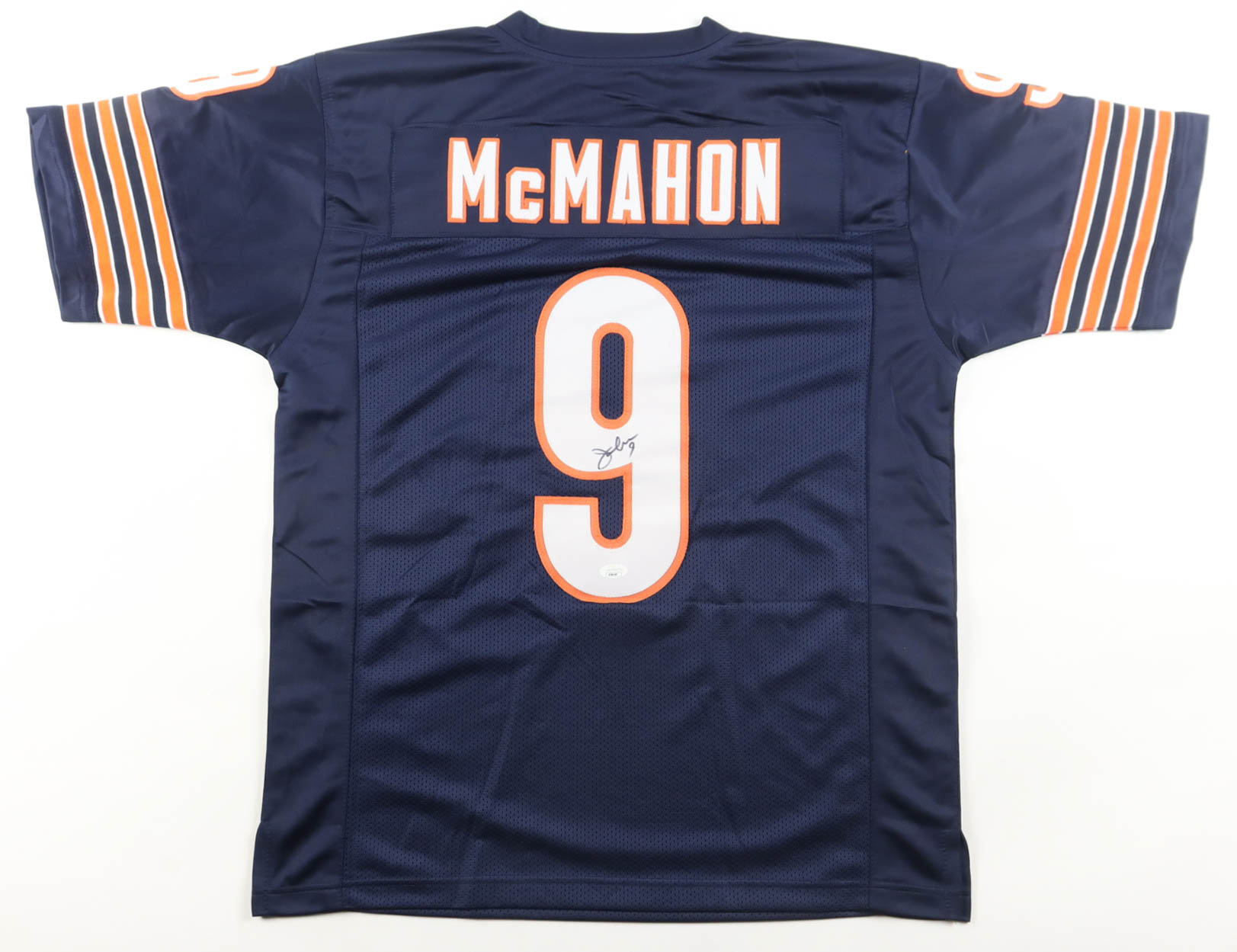 Custom jersey with everything sewn on, size XL. Hand-signed by Jim McMahon.