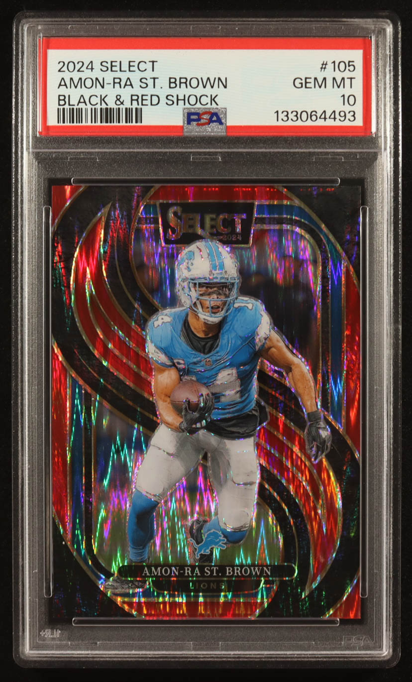 Amon-Ra St. Brown 2024 Select Prizm Black and Red Shock #105 (PSA 10)