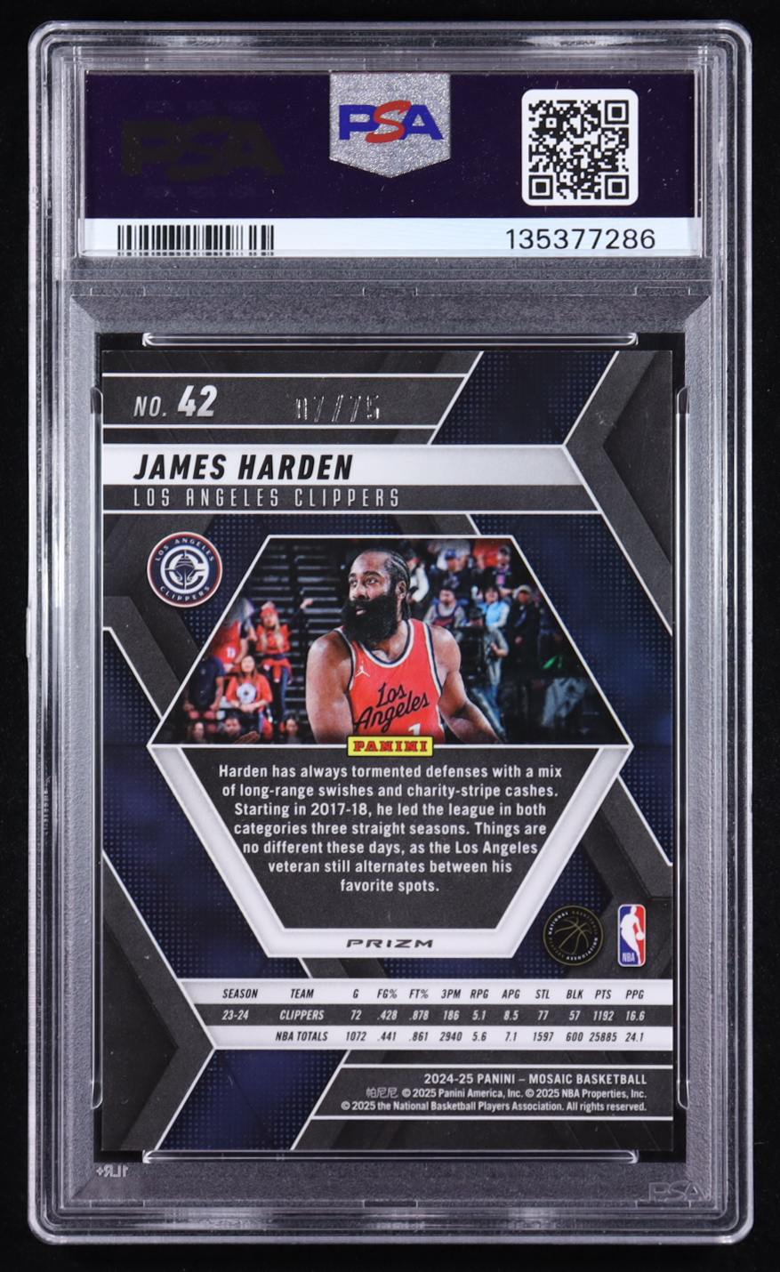 James Harden 2024-25 Panini Mosaic Mosaic Red Fluorescent #42 #07/75 (PSA 10)