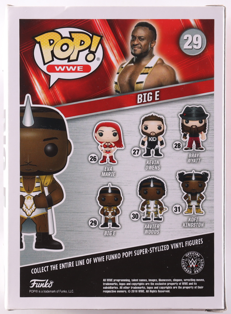Funko Pop! vinyl figure measures approximately 4" in height and has been hand-signed on the packaging by Big E Langston.