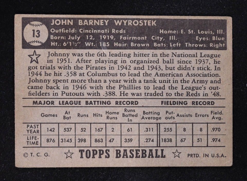 Johnny Wyrostek 1952 Topps #13
