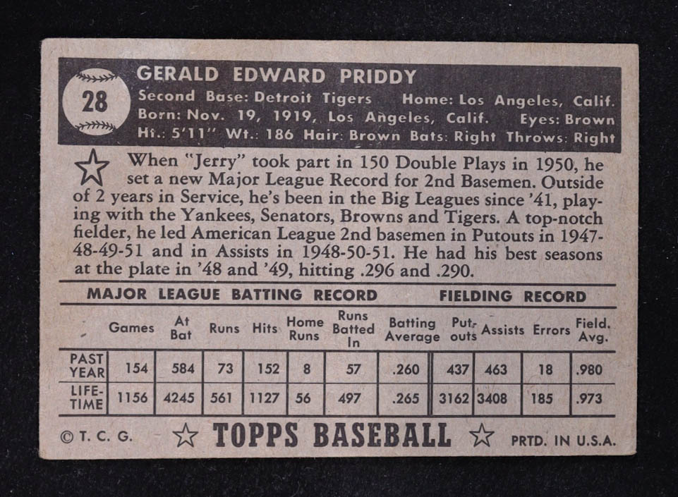 Jerry Priddy 1952 Topps #28