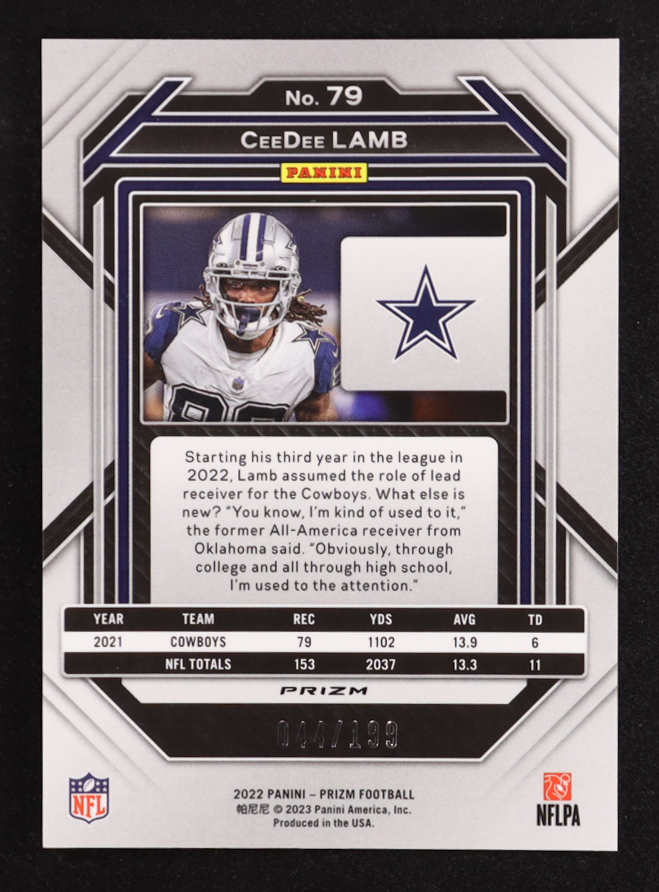 CeeDee Lamb 2022 Panini Prizm Prizms Blue Wave #79 #044/199