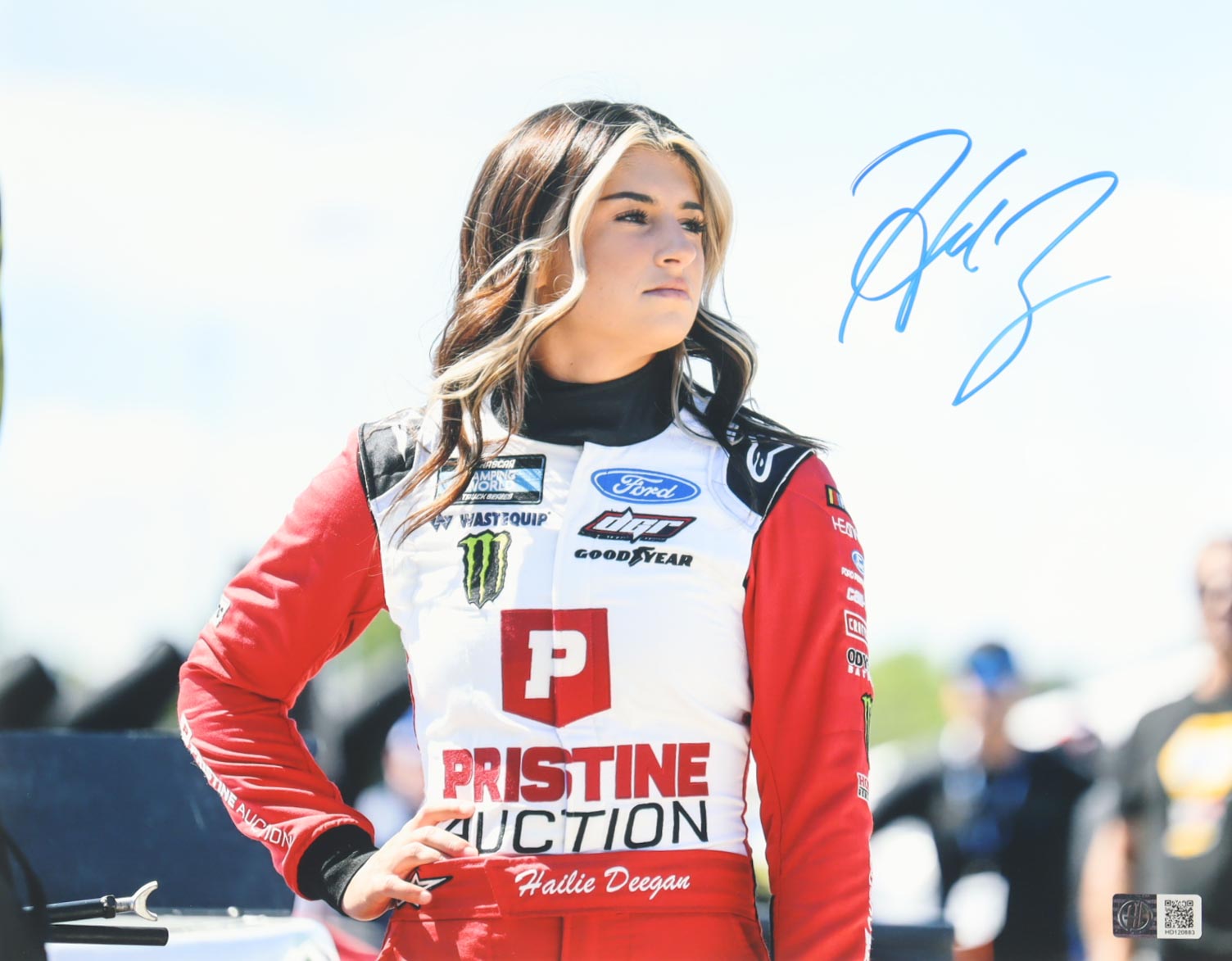 The autograph includes an exclusive Hailie Deegan hologram and matching COA for authenticity purposes.