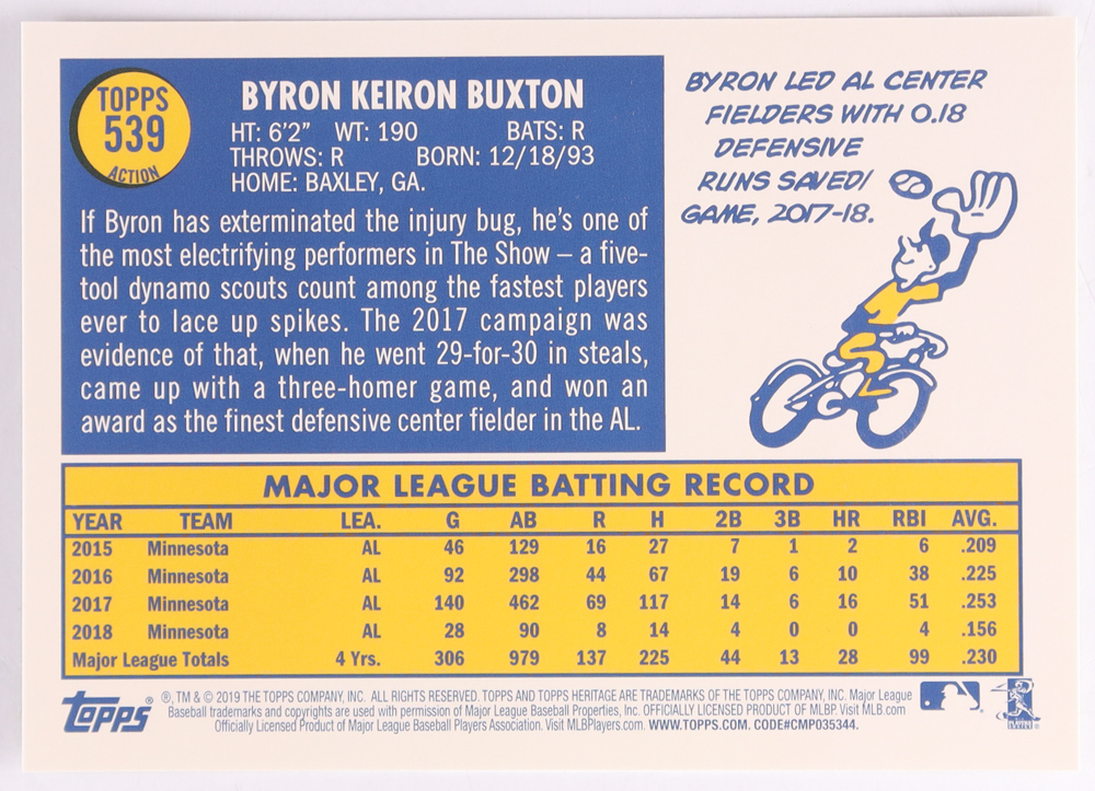 Byron Buxton 2019 Topps Heritage #539 Jumbo