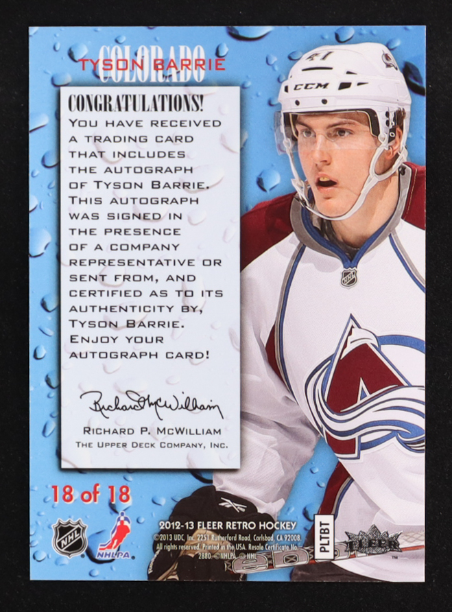 Tyson Barrie 2012-13 Fleer Retro Rookie Sensations Autographs #18 RC