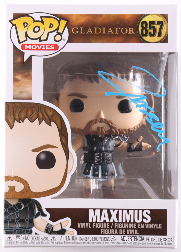 Funko Pop! vinyl figure measures approximately 4" in height and has been hand-signed on the packaging by Russell Crowe.