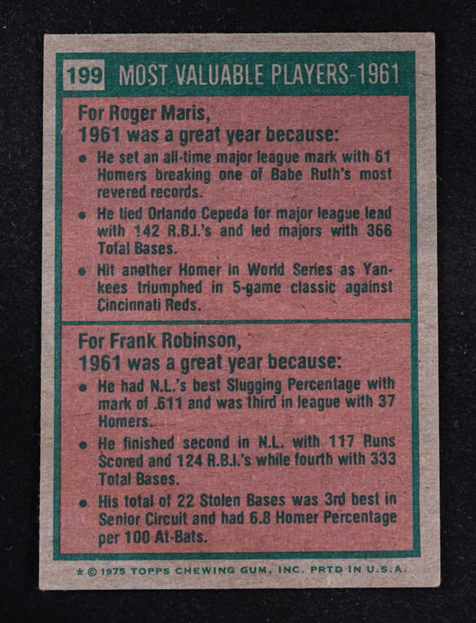 Roger Maris / Frank Robinson 1975 Topps #199 MVP