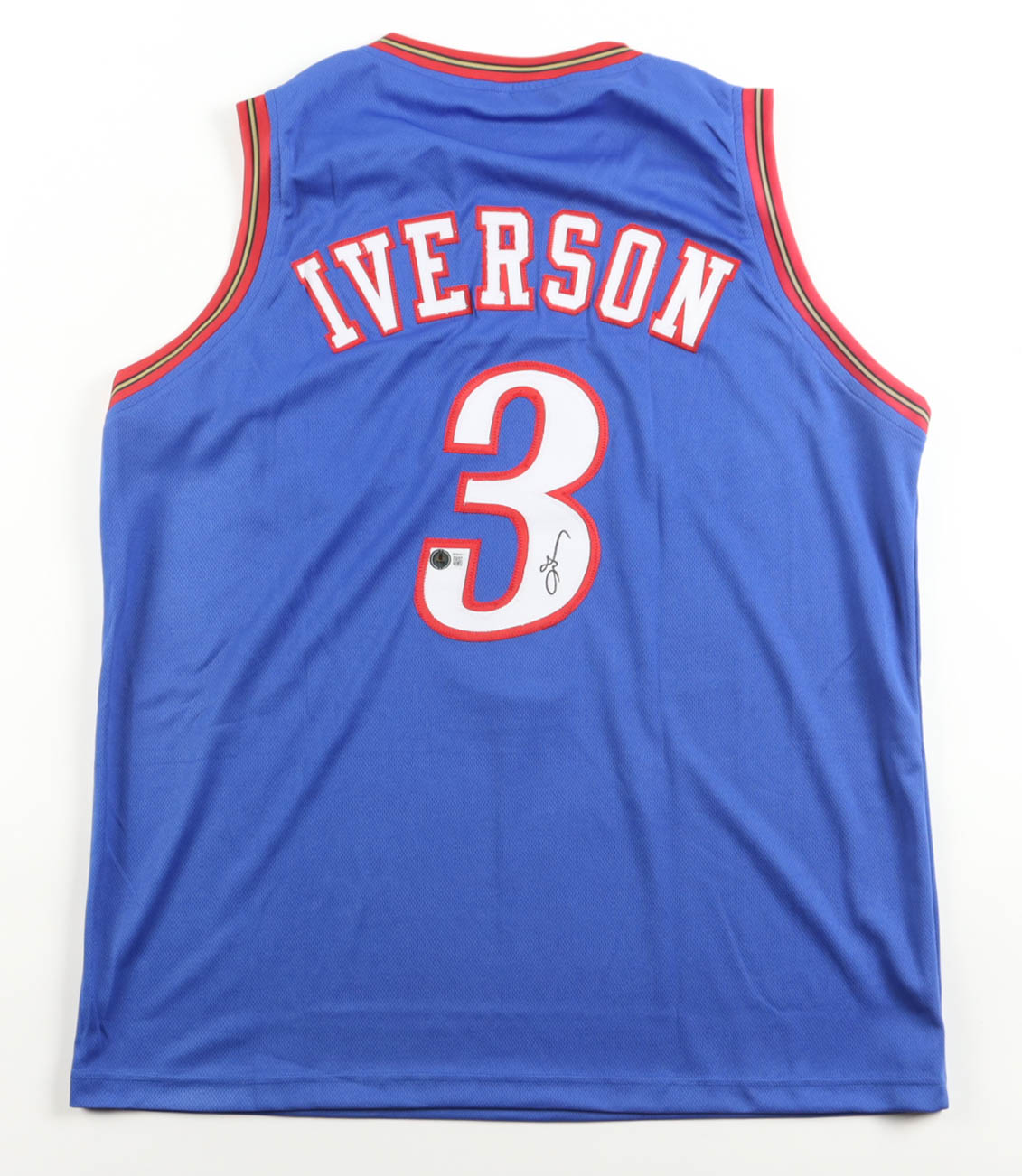 Custom jersey with everything sewn on, size XL. Hand-signed by Allen Iverson (HOF).