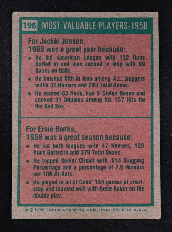 Jackie Jensen / Ernie Banks 1975 Topps #196 MVP