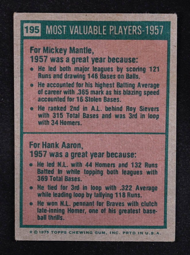 Mickey Mantle / Hank Aaron 1975 Topps #195 MVP
