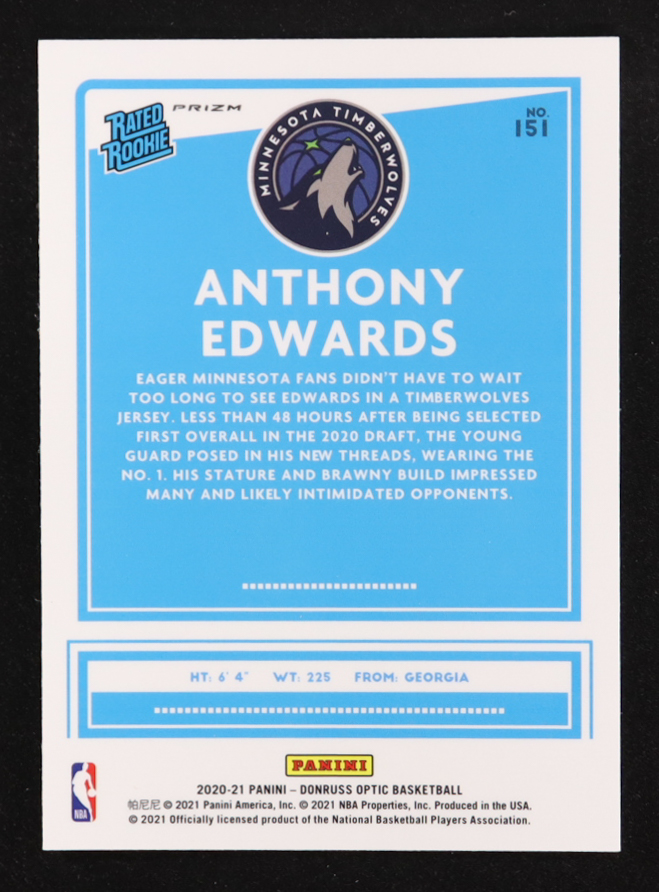 Anthony Edwards 2020-21 Donruss Optic Fanatics Box Set #151 RC