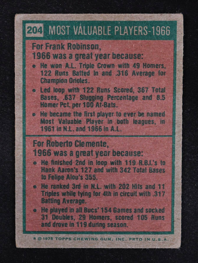 Frank Robinson / Roberto Clemente 1975 Topps #204 MVP
