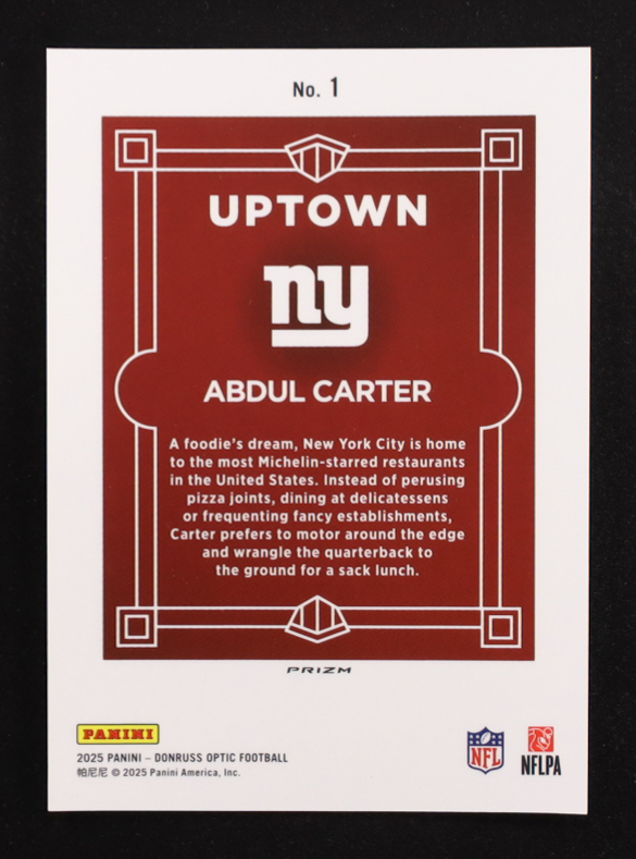 Abdul Carter 2025 Donruss Optic Uptown #1 RC