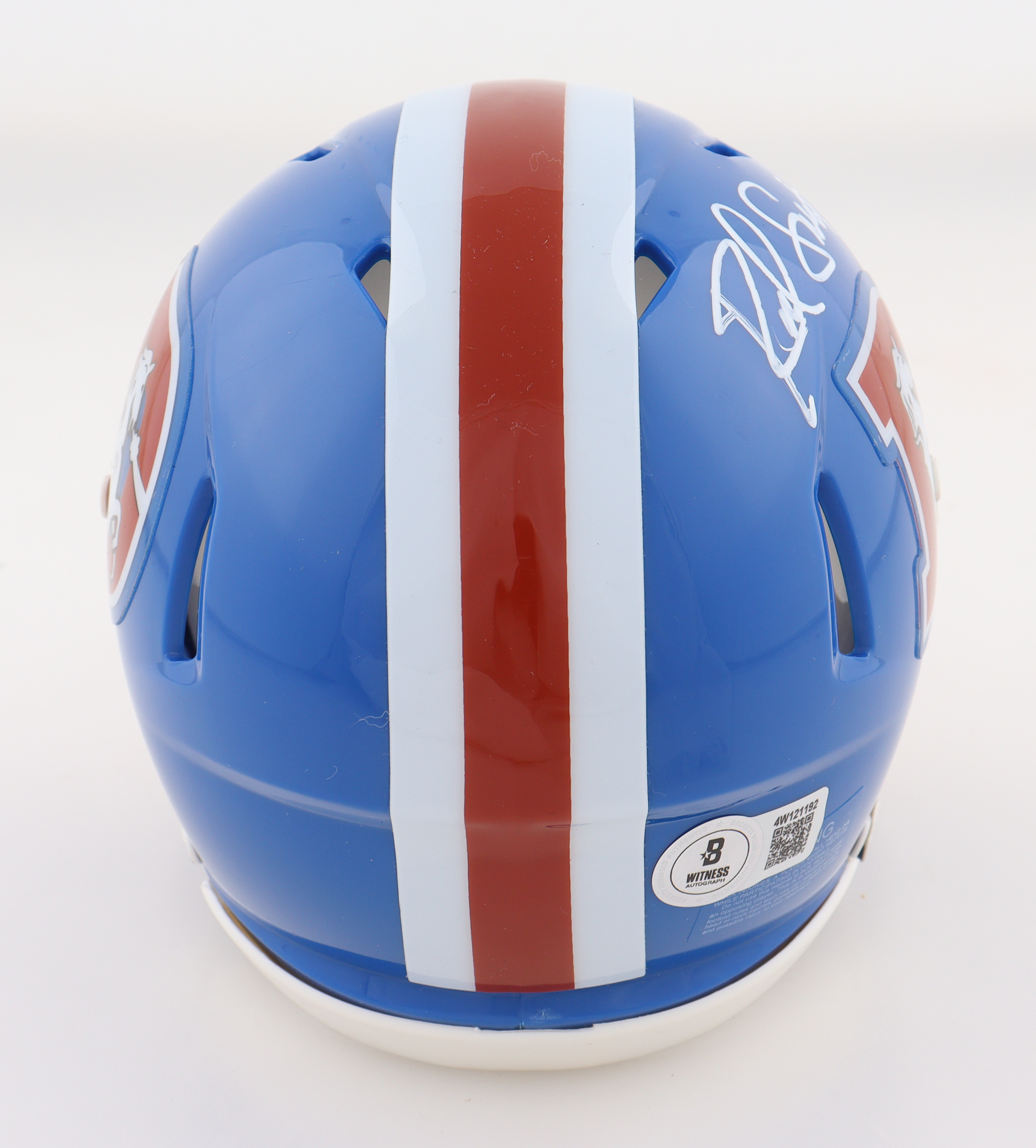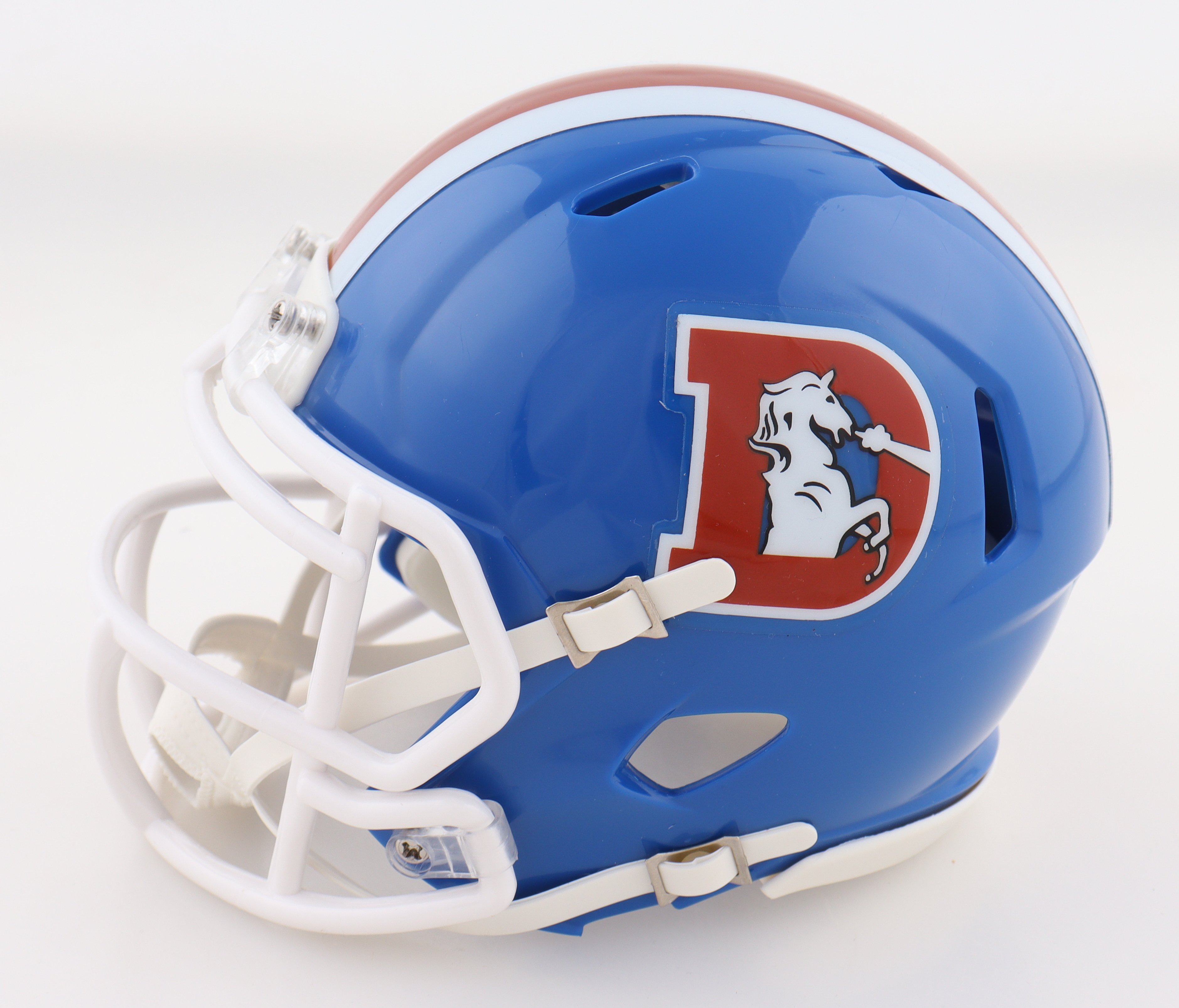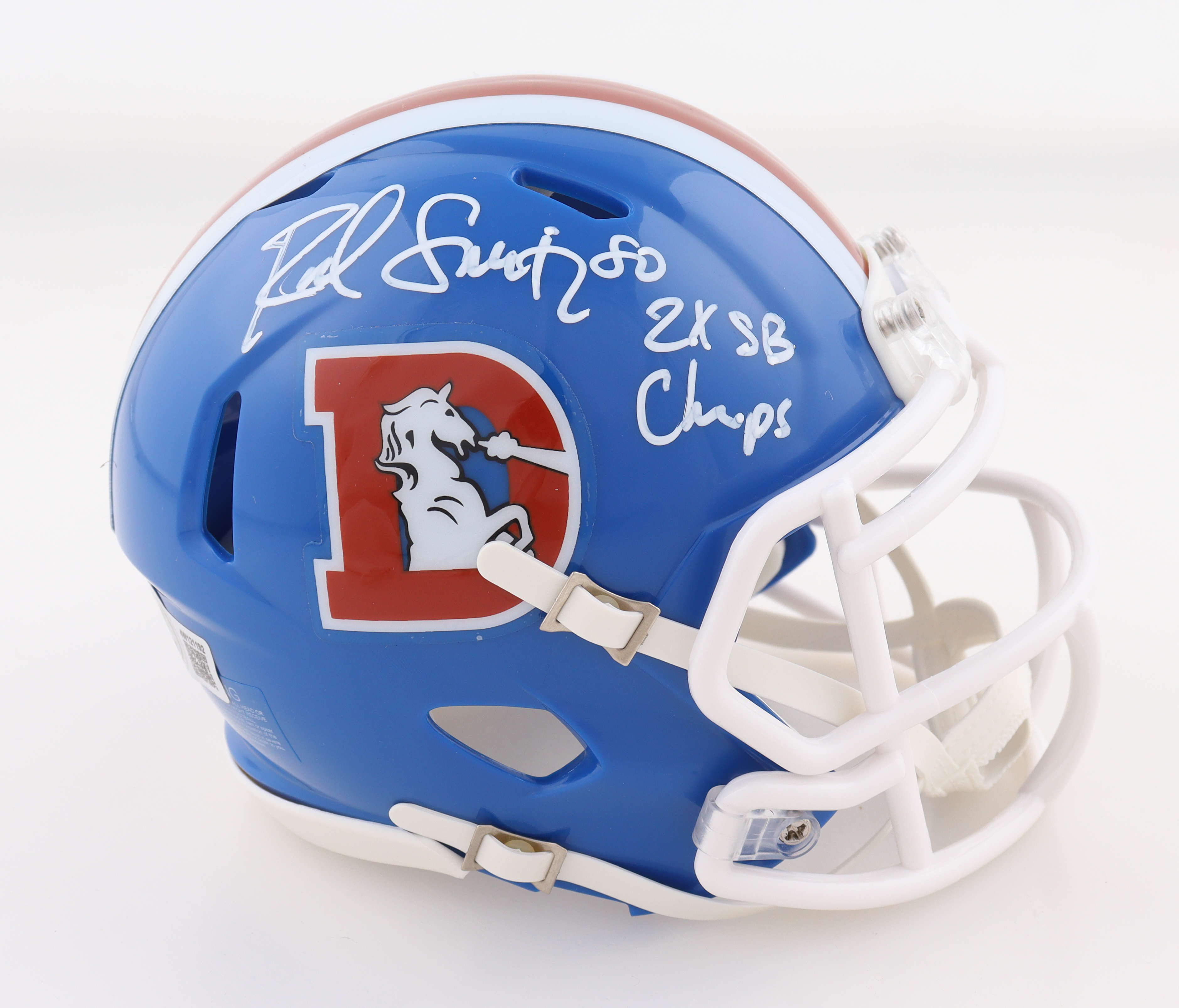 Riddell Denver Broncos Throwback Speed mini helmet has been hand-signed and inscribed by Rod Smith.